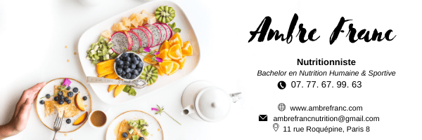 Ambre Franc, nutritionniste & chargée de projet en nutrition humaine et sportive vous accompagne dans toutes vos problématique liées à l’alimentation : rééquilibrage alimentaire, perte/prise de poids… mais aussi dans vos pathologies nécessitant un accompagnement nutritionnel : diabète, cancer, hypercholestérolémie etc.